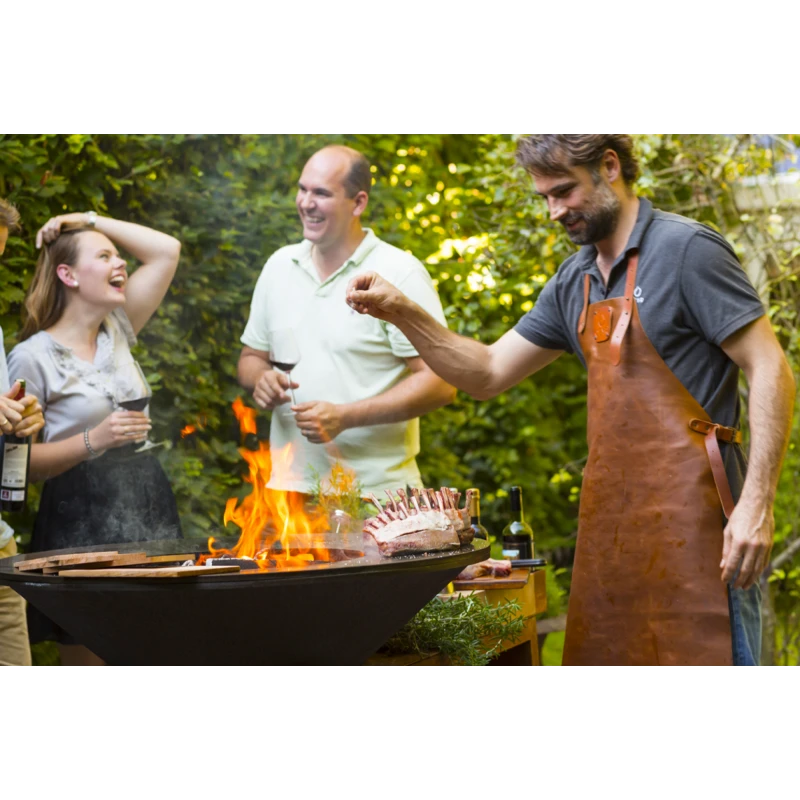 Delantal de cuero negro OFYR es un sofisticado delantal hecho en cuero de alta calidad con el detalle del logotipo remachado y correa ajustable que proporciona una gran protección térmica y cuyo aspecto incluso mejora con el tiempo.